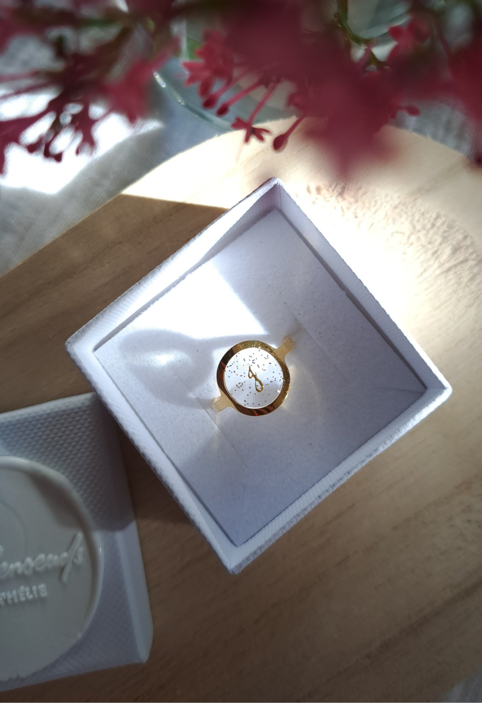 De jolies bagues en résine et en acier inoxydable, réglables, dorées ou argentées à personnaliser avec une jolie initiale.